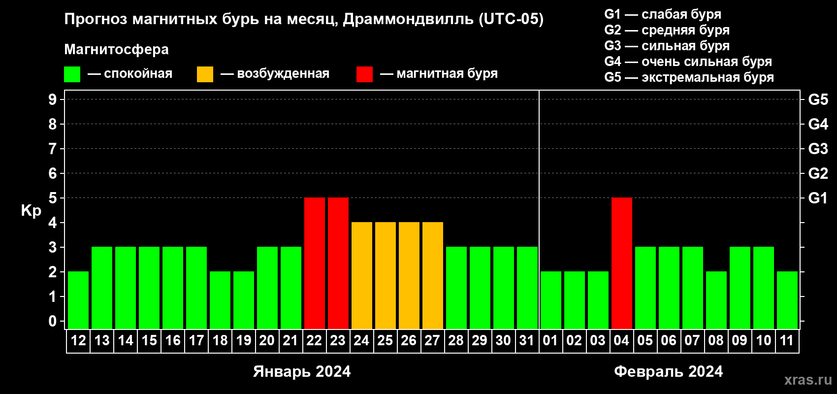 Прогноз магнитных бурь в Драммондвилле — 12 января 2024 года
