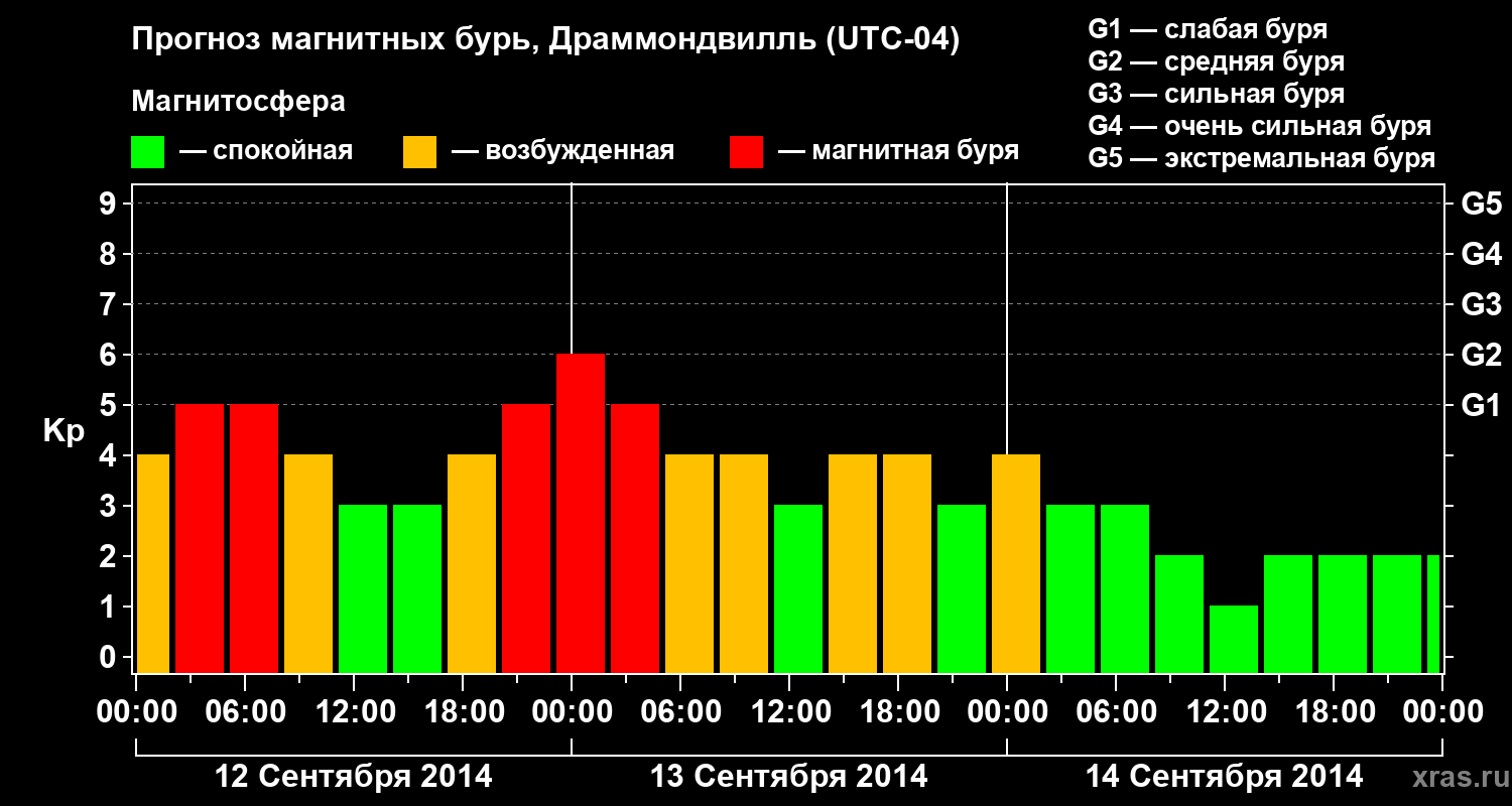 Прогноз магнитных бурь в Драммондвилле на 12 сентября 2014 года