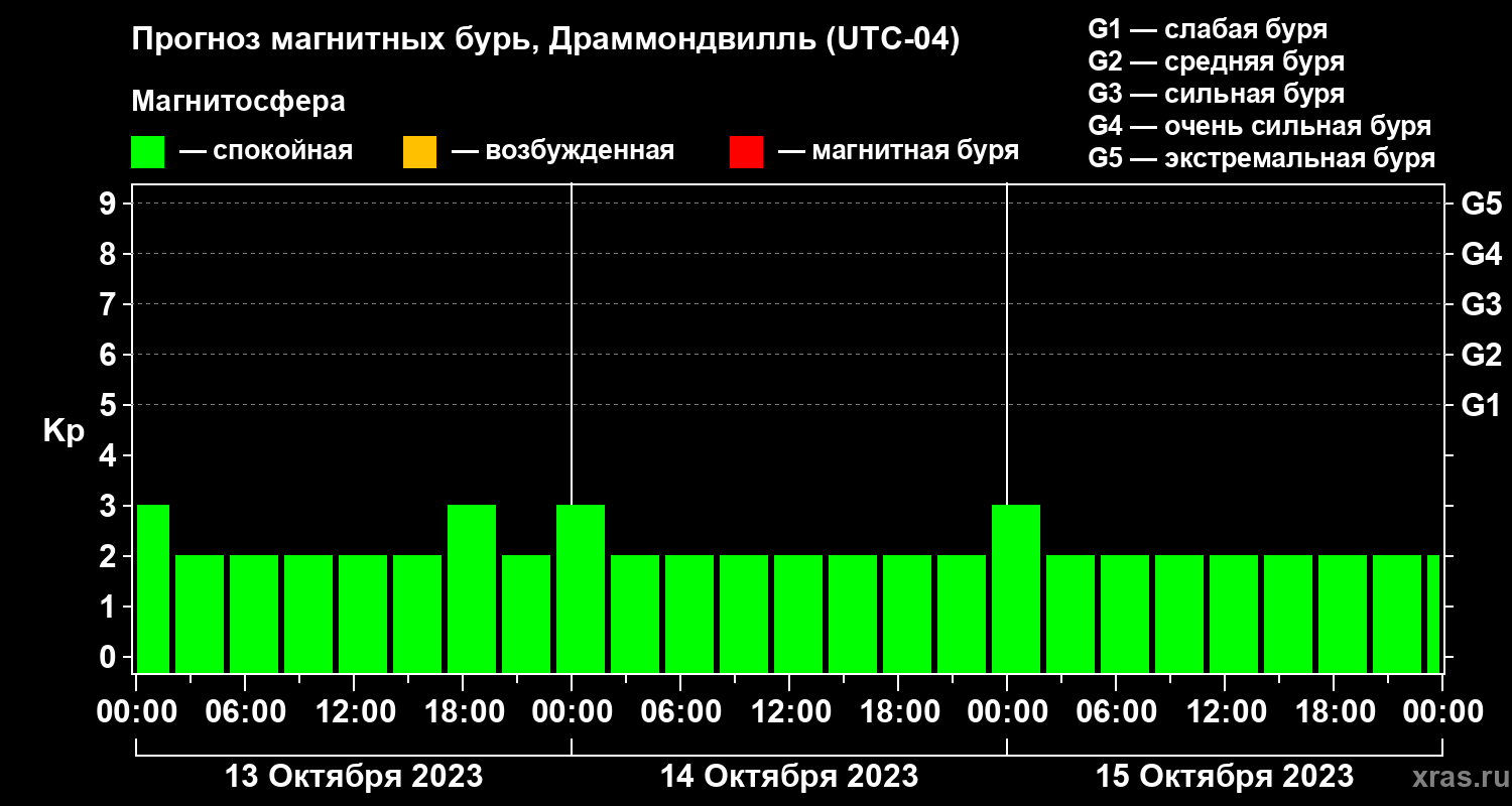 Прогноз магнитных бурь в Драммондвилле — 13 октября 2023 года