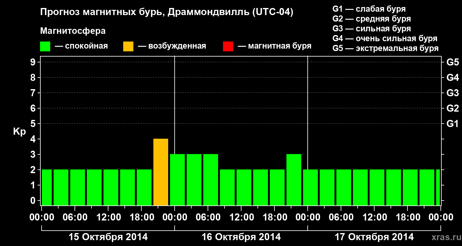 Прогноз магнитных бурь в Драммондвилле — 15 октября 2014 года