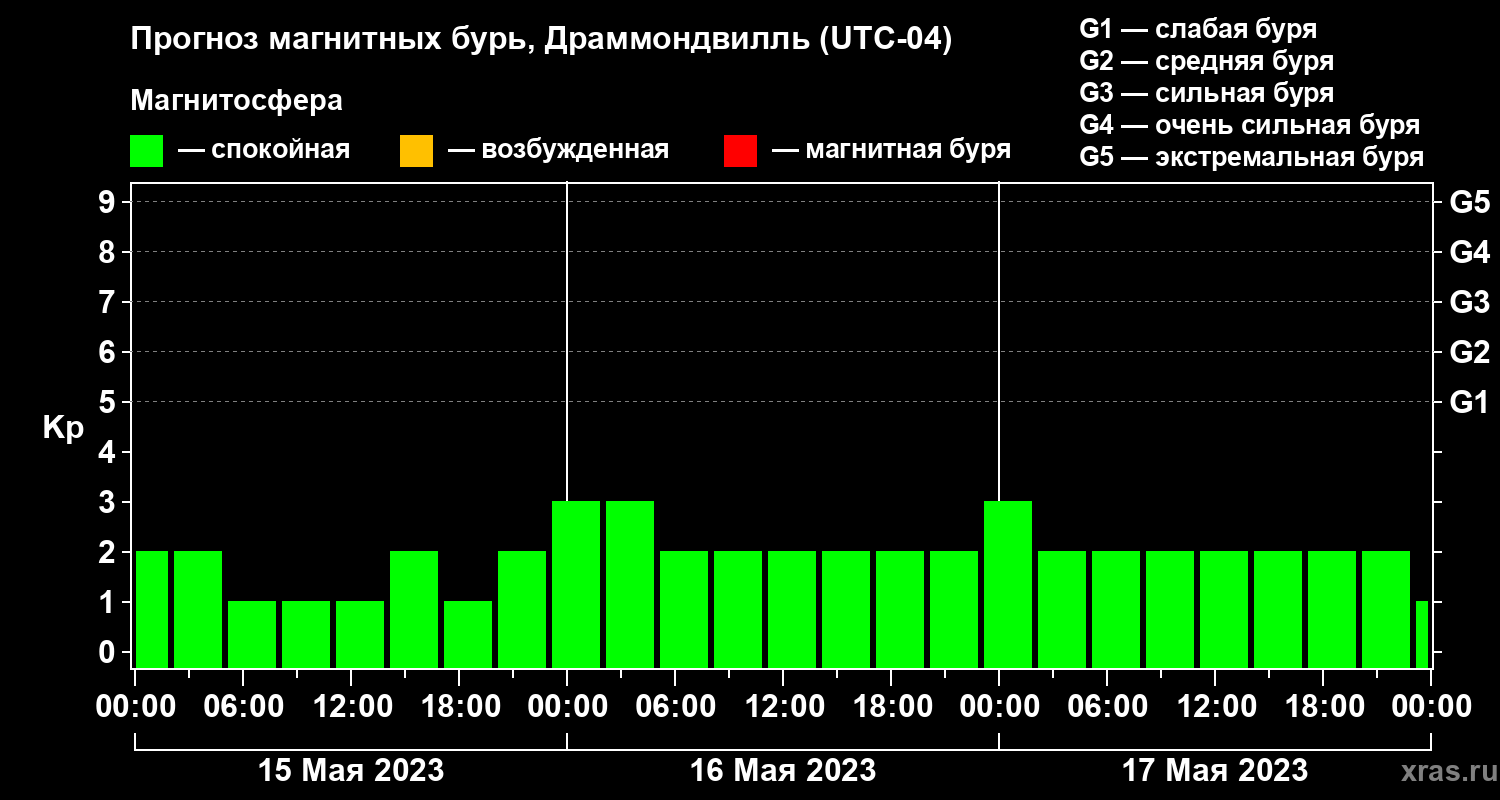 Прогноз магнитных бурь в Драммондвилле на 15 мая 2023 года