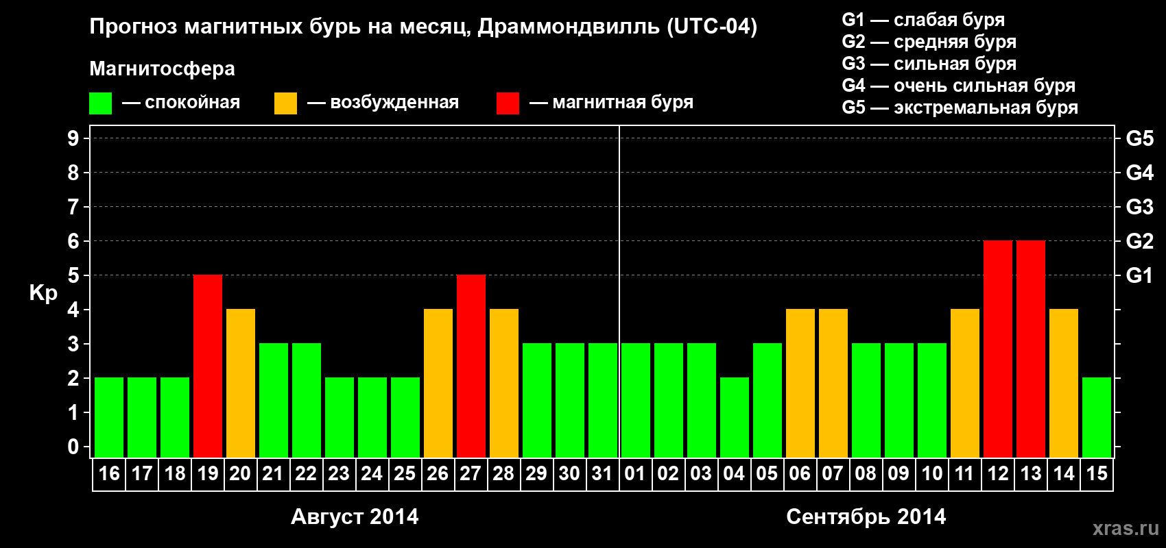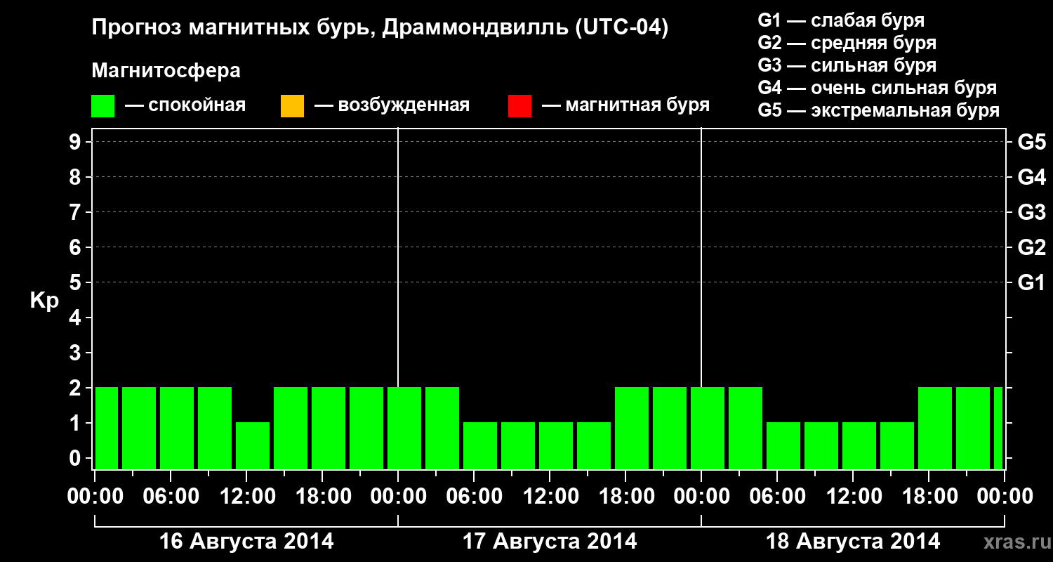 Прогноз магнитных бурь в Драммондвилле — 16 августа 2014 года