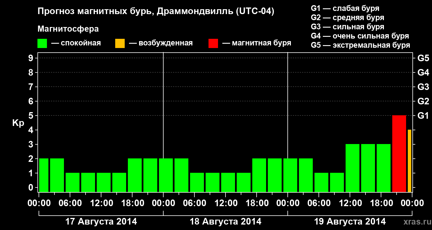 Прогноз магнитных бурь в Драммондвилле — 17 августа 2014 года