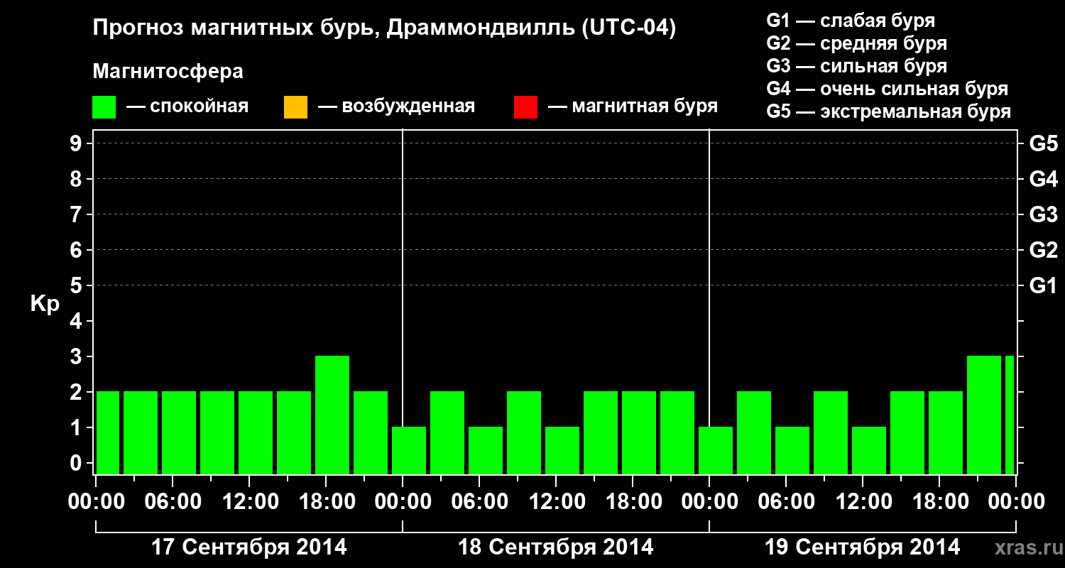 Прогноз магнитных бурь в Драммондвилле — 17 сентября 2014 года