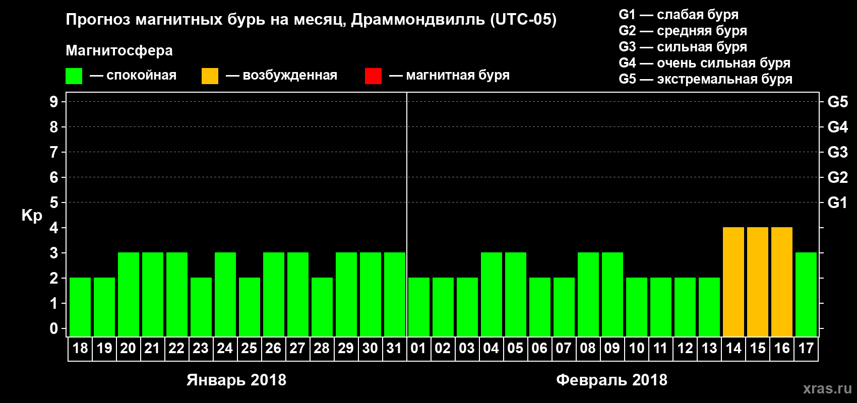 Прогноз магнитных бурь в Драммондвилле — 18 января 2018 года