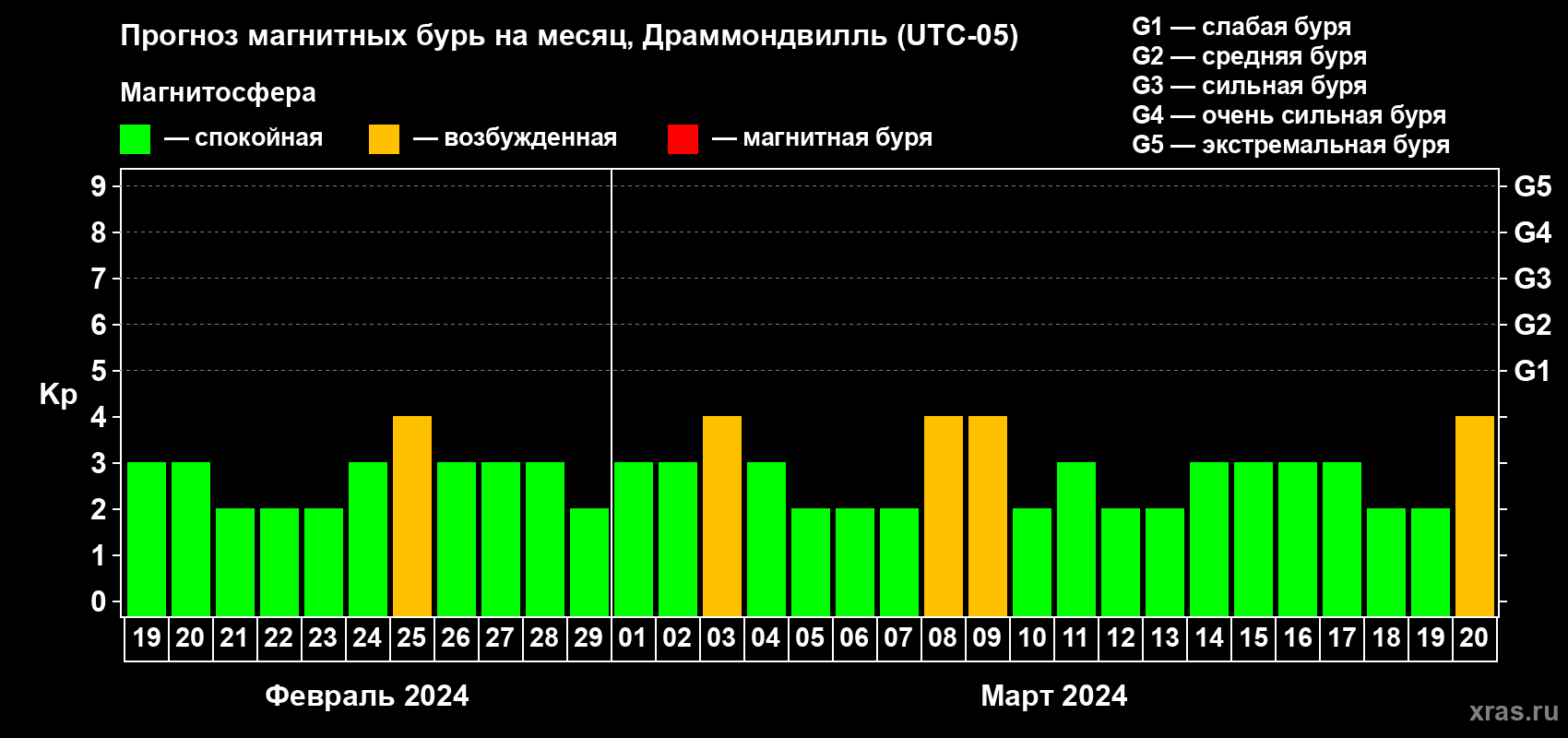 Прогноз магнитных бурь в Драммондвилле на 19 февраля 2024 года
