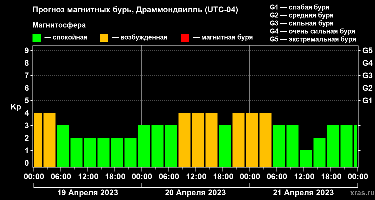 Прогноз магнитных бурь в Драммондвилле на 19 апреля 2023 года