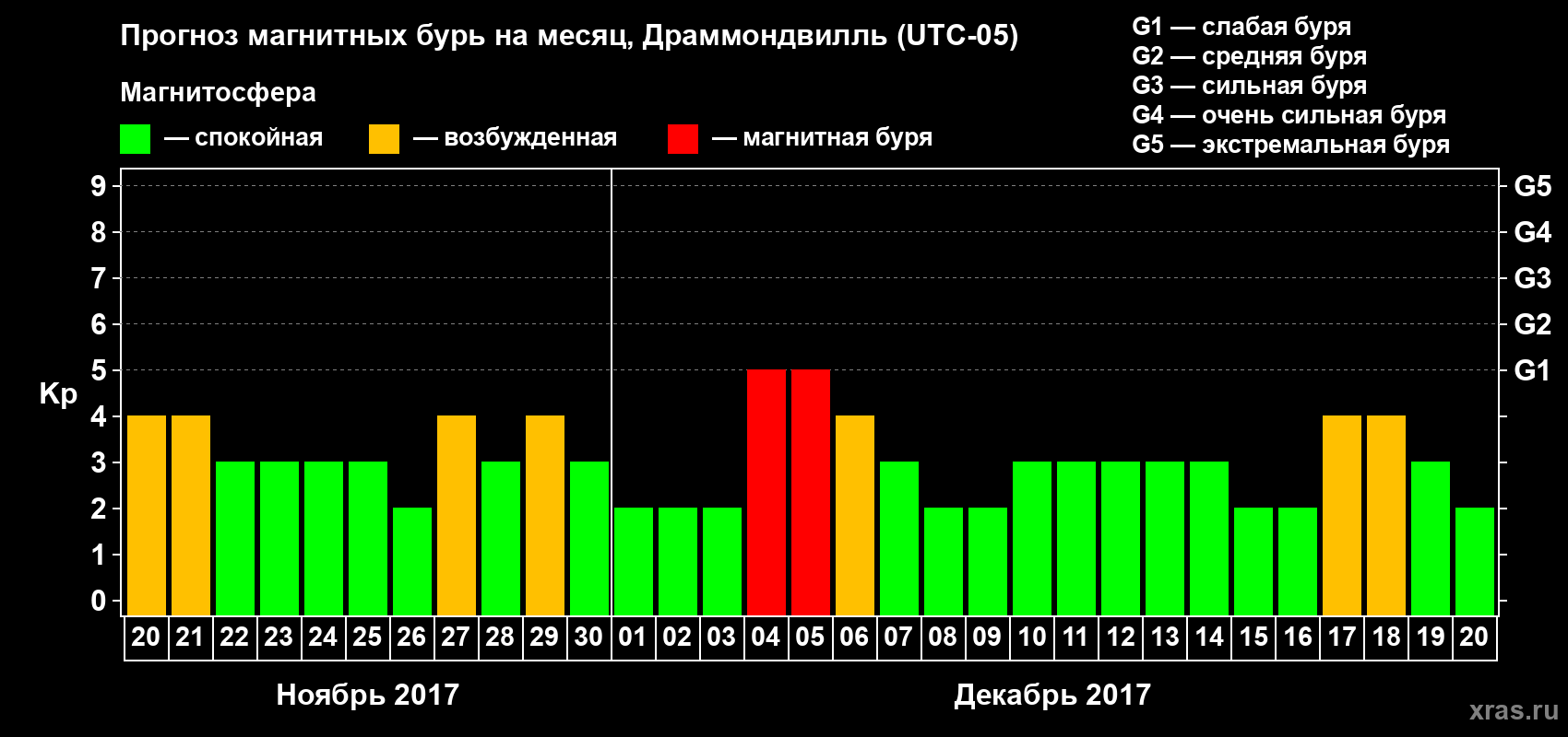 Прогноз магнитных бурь в Драммондвилле — 20 ноября 2017 года