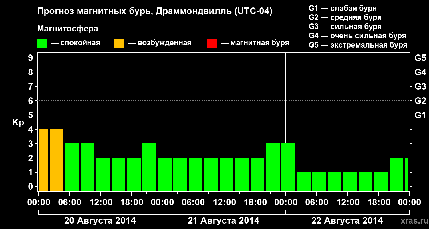 Прогноз магнитных бурь в Драммондвилле — 20 августа 2014 года