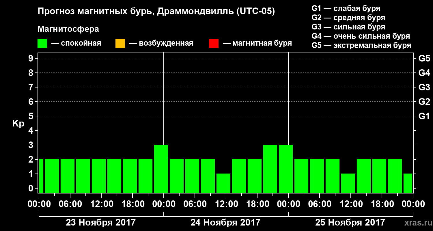 Прогноз магнитных бурь в Драммондвилле — 23 ноября 2017 года