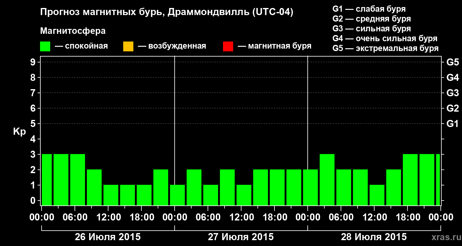 Прогноз магнитных бурь в Драммондвилле на 26 июля 2015 года