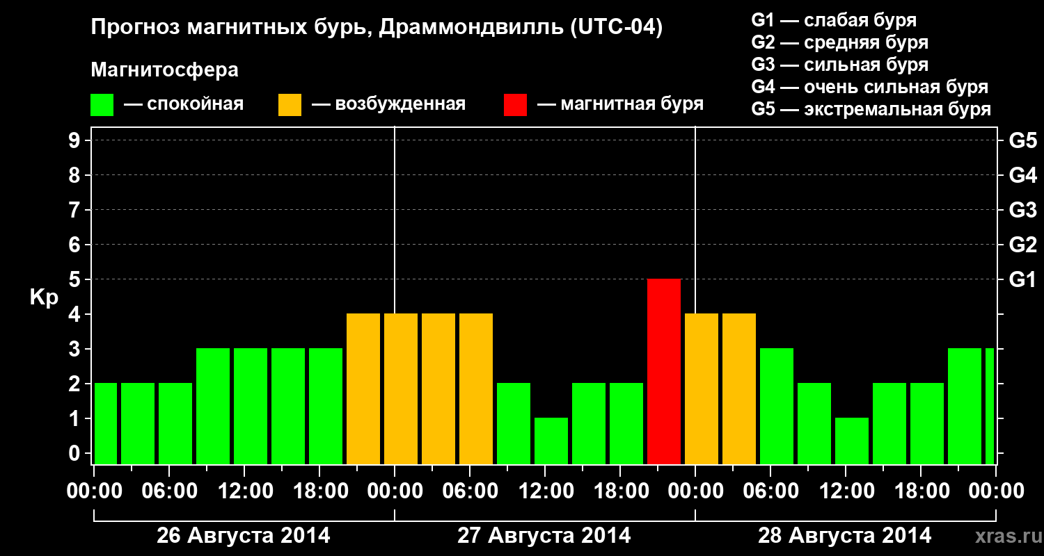 Прогноз магнитных бурь в Драммондвилле — 26 августа 2014 года