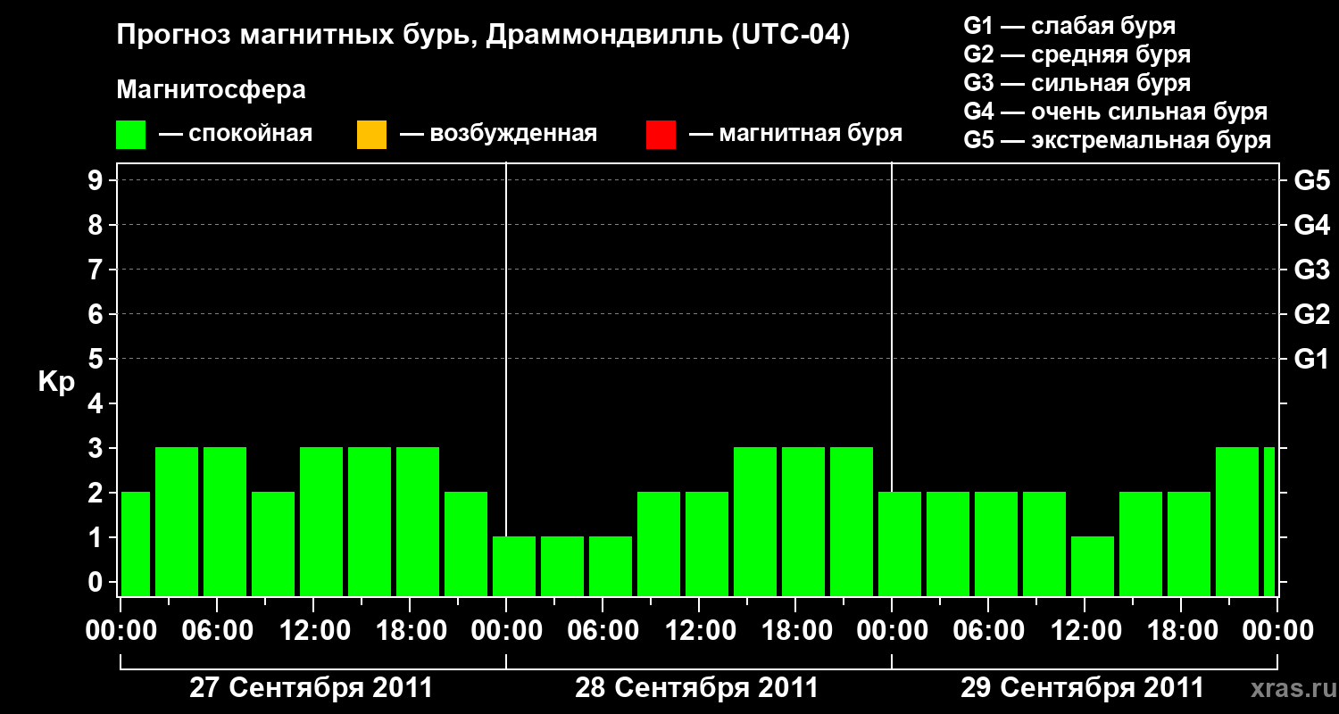 Прогноз магнитных бурь в Драммондвилле — 27 сентября 2011 года