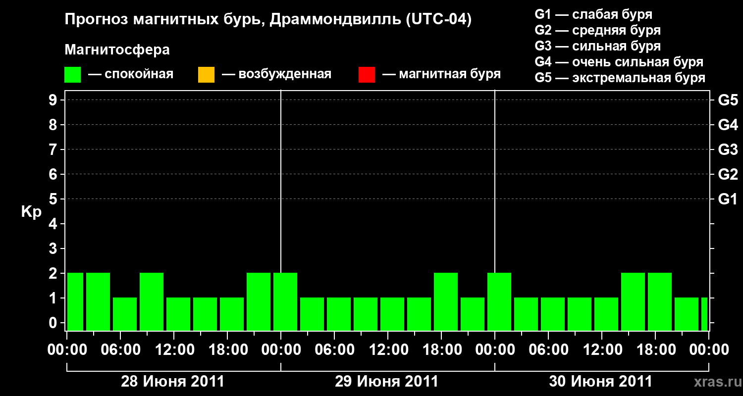 Прогноз магнитных бурь в Драммондвилле на 28 июня 2011 года