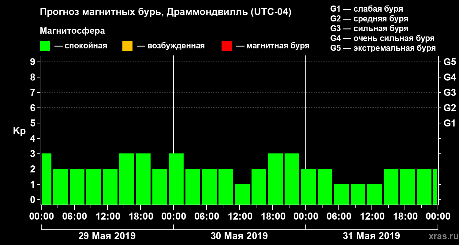 Прогноз магнитных бурь в Драммондвилле — 29 мая 2019 года