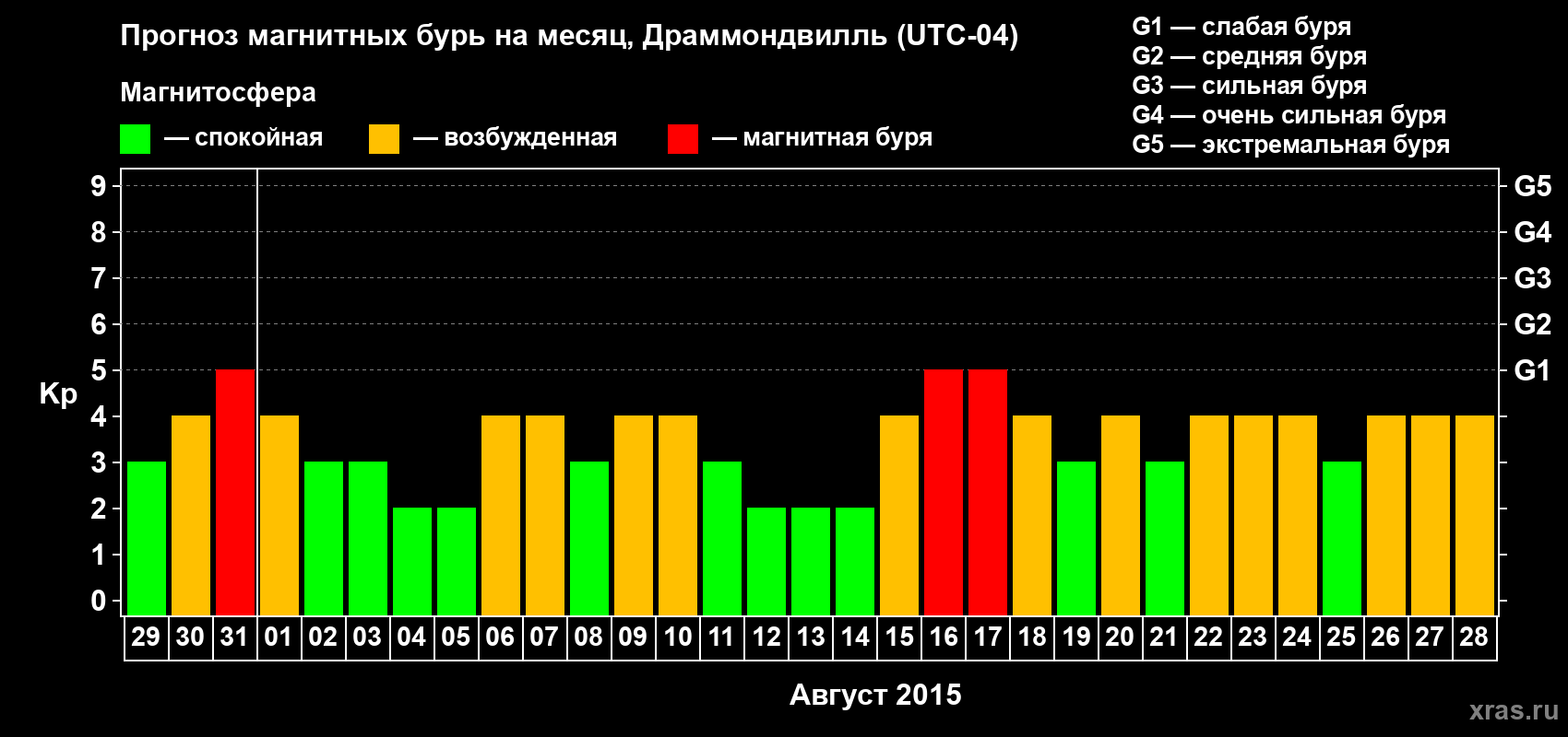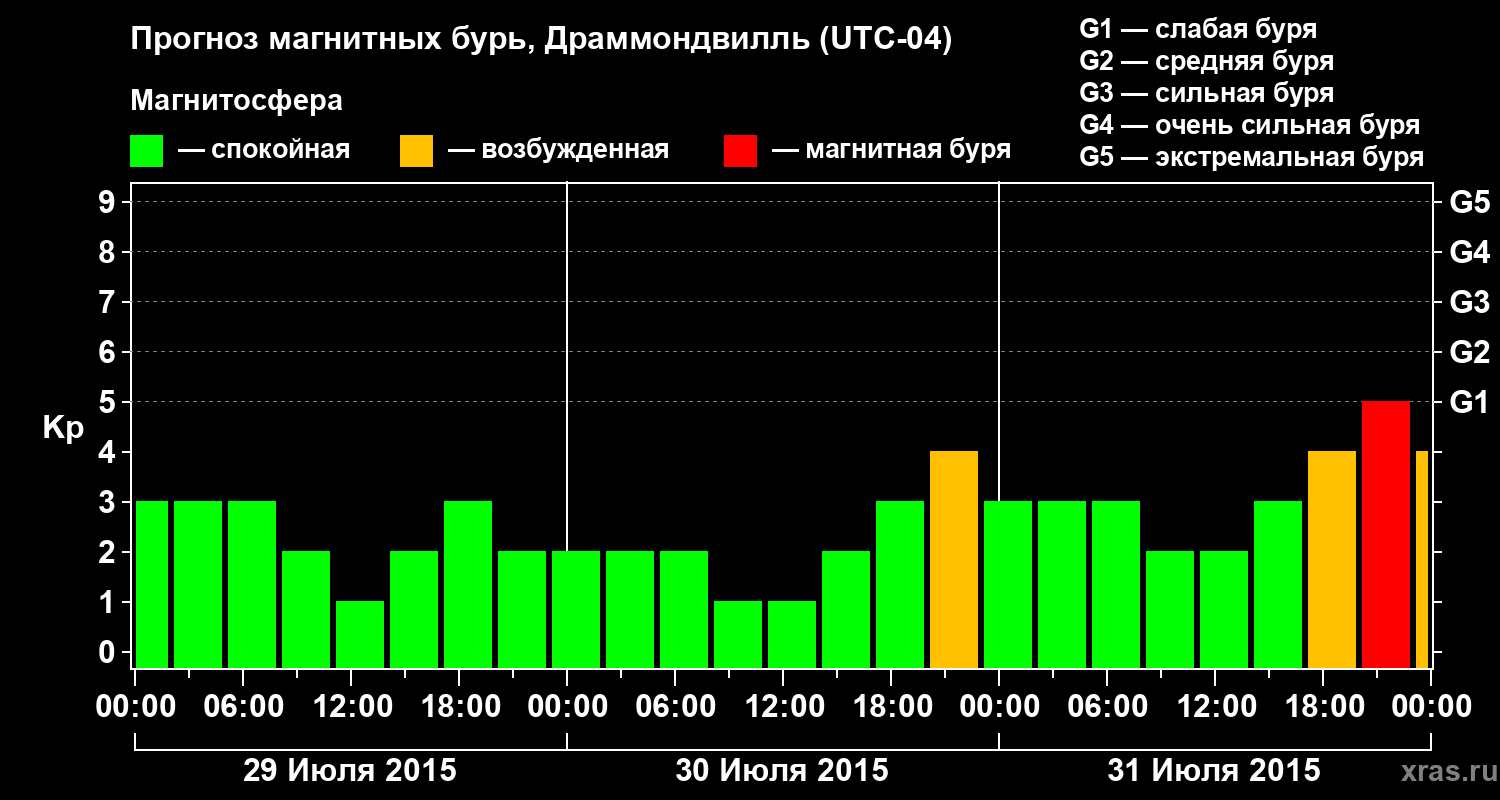 Прогноз магнитных бурь в Драммондвилле — 29 июля 2015 года