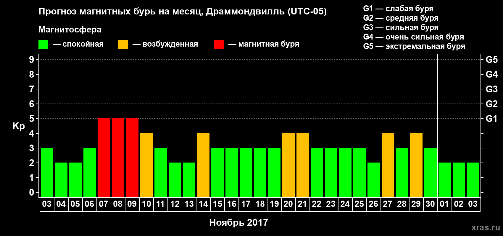 Прогноз магнитных бурь в Драммондвилле — 3 ноября 2017 года