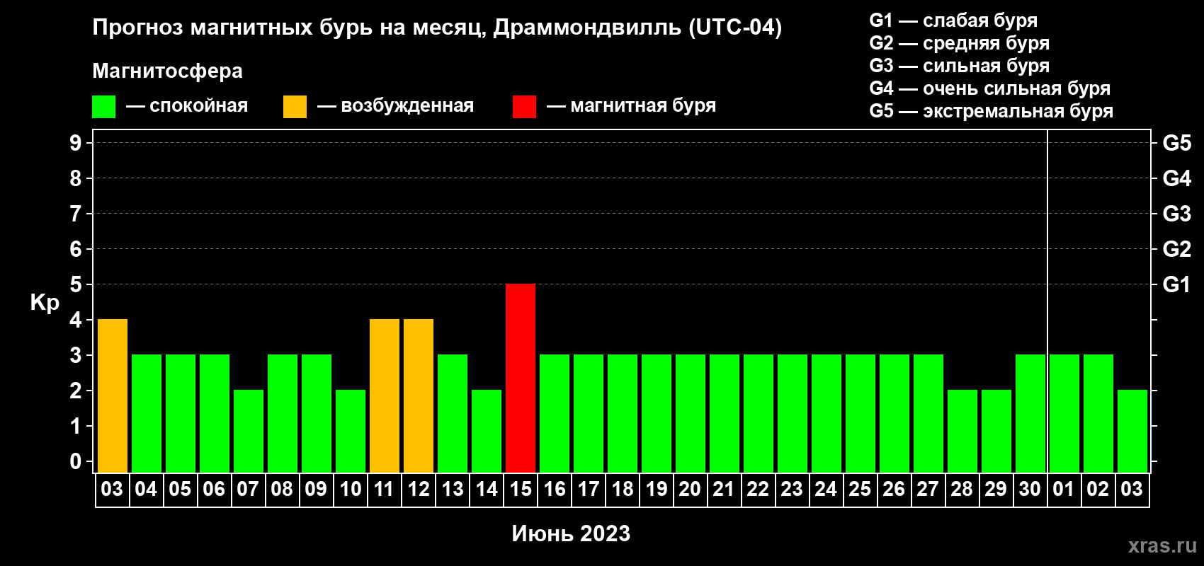 Прогноз магнитных бурь в Драммондвилле — 3 июня 2023 года