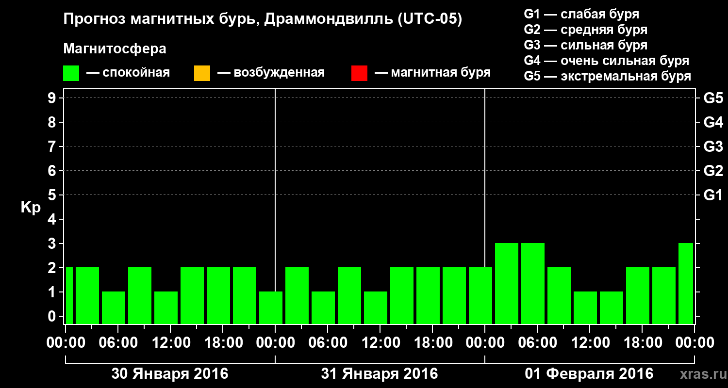 Прогноз магнитных бурь в Драммондвилле — 30 января 2016 года