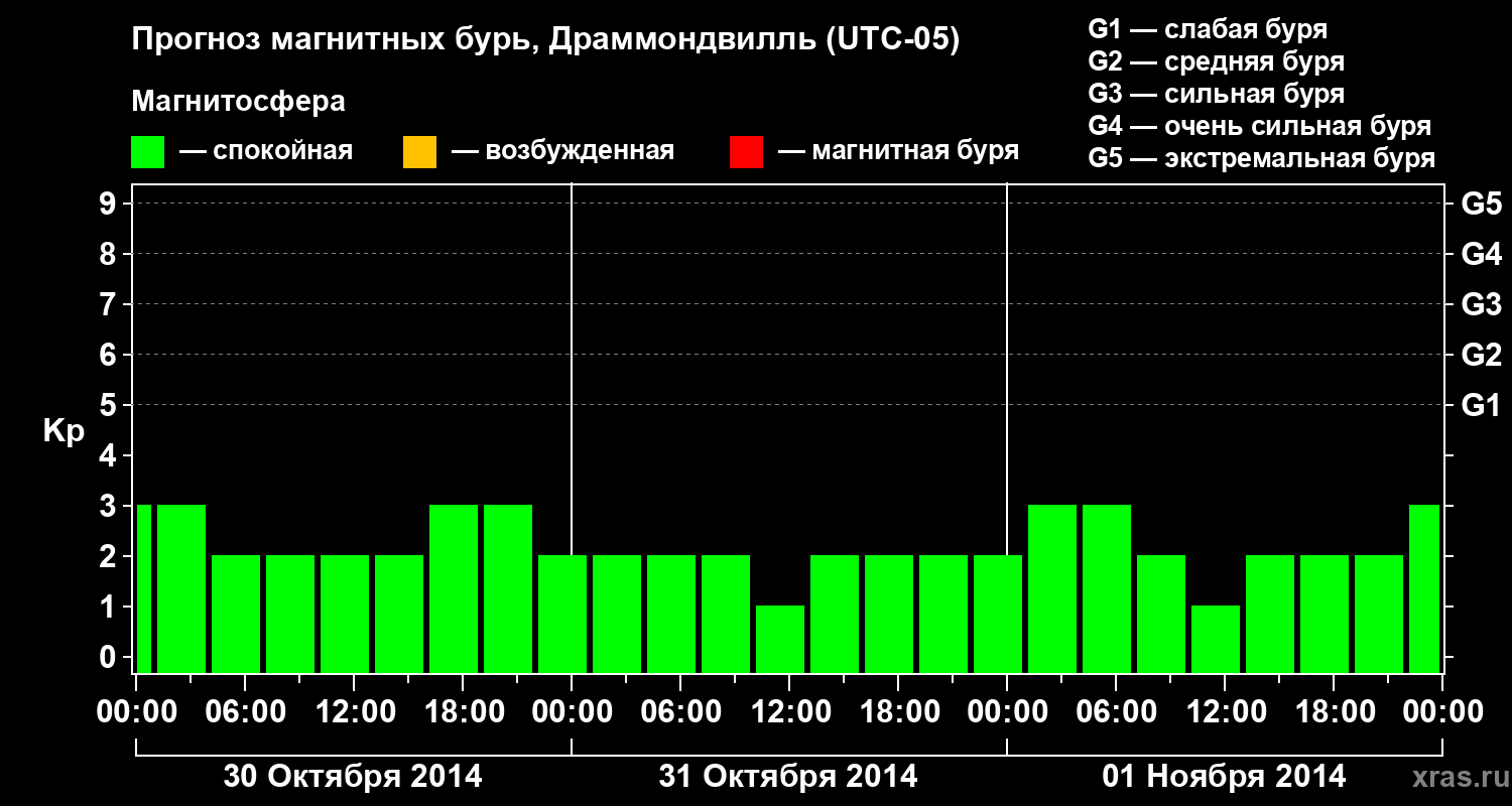 Прогноз магнитных бурь в Драммондвилле — 30 октября 2014 года