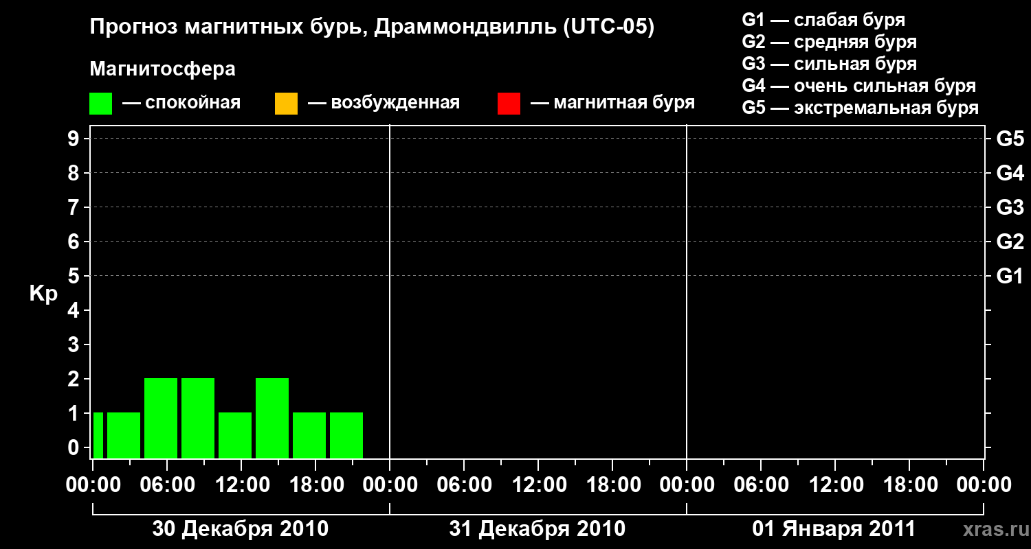 Прогноз магнитных бурь в Драммондвилле на 30 декабря 2010 года