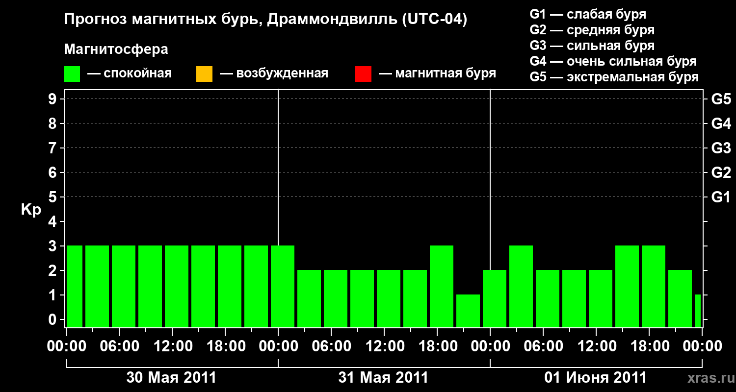Прогноз магнитных бурь в Драммондвилле на 30 мая 2011 года