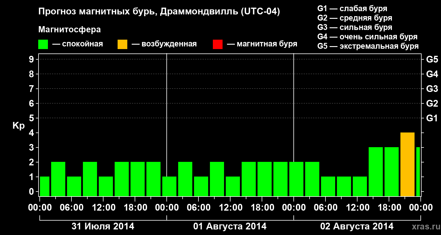Прогноз магнитных бурь в Драммондвилле — 31 июля 2014 года
