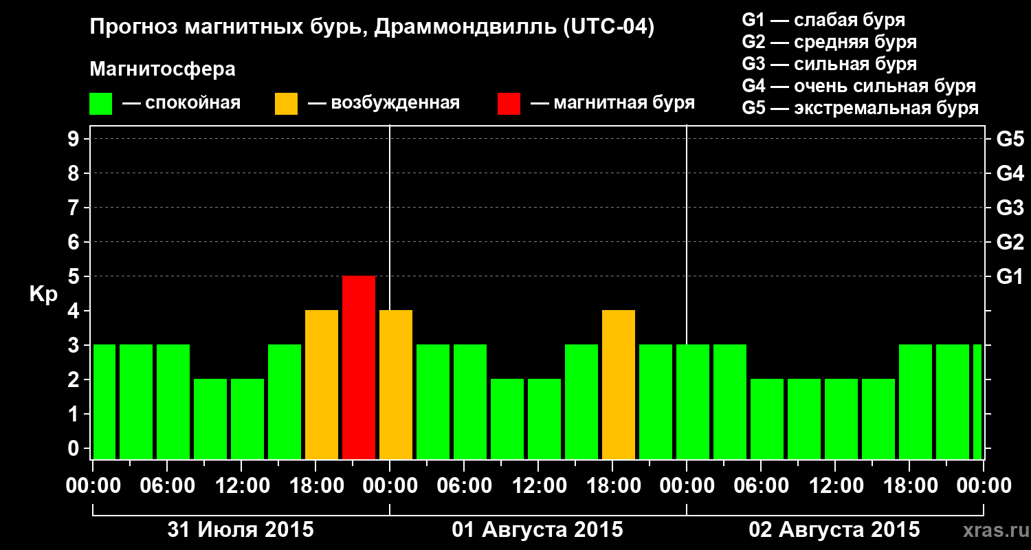 Прогноз магнитных бурь в Драммондвилле — 31 июля 2015 года