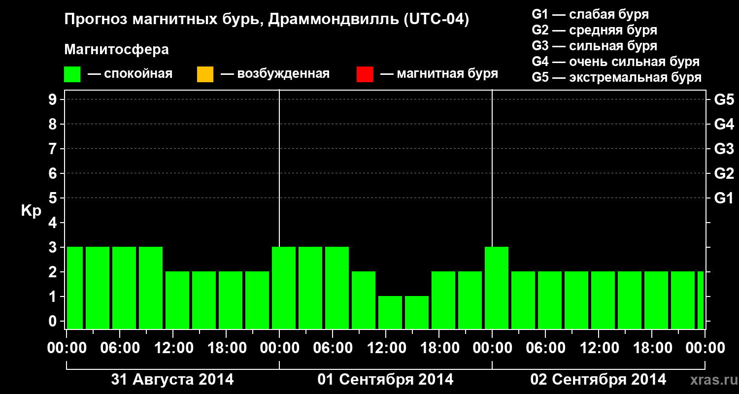 Прогноз магнитных бурь в Драммондвилле — 31 августа 2014 года