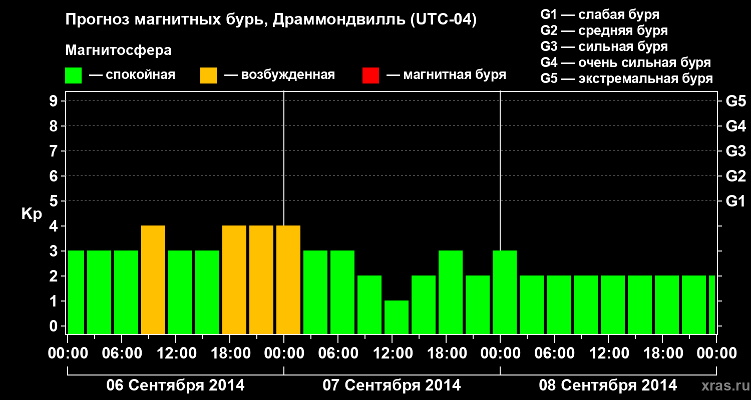 Прогноз магнитных бурь в Драммондвилле — 6 сентября 2014 года