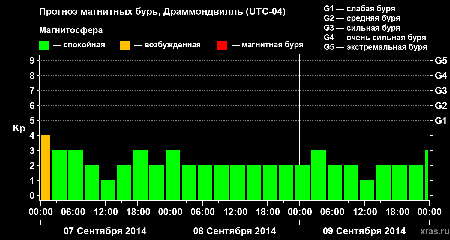 Прогноз магнитных бурь в Драммондвилле — 7 сентября 2014 года