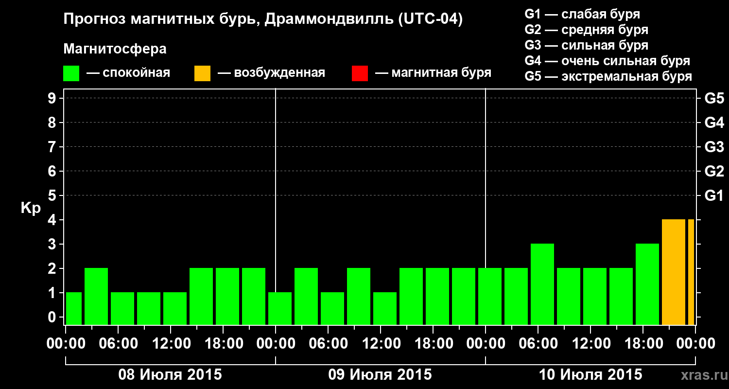 Прогноз магнитных бурь в Драммондвилле — 8 июля 2015 года