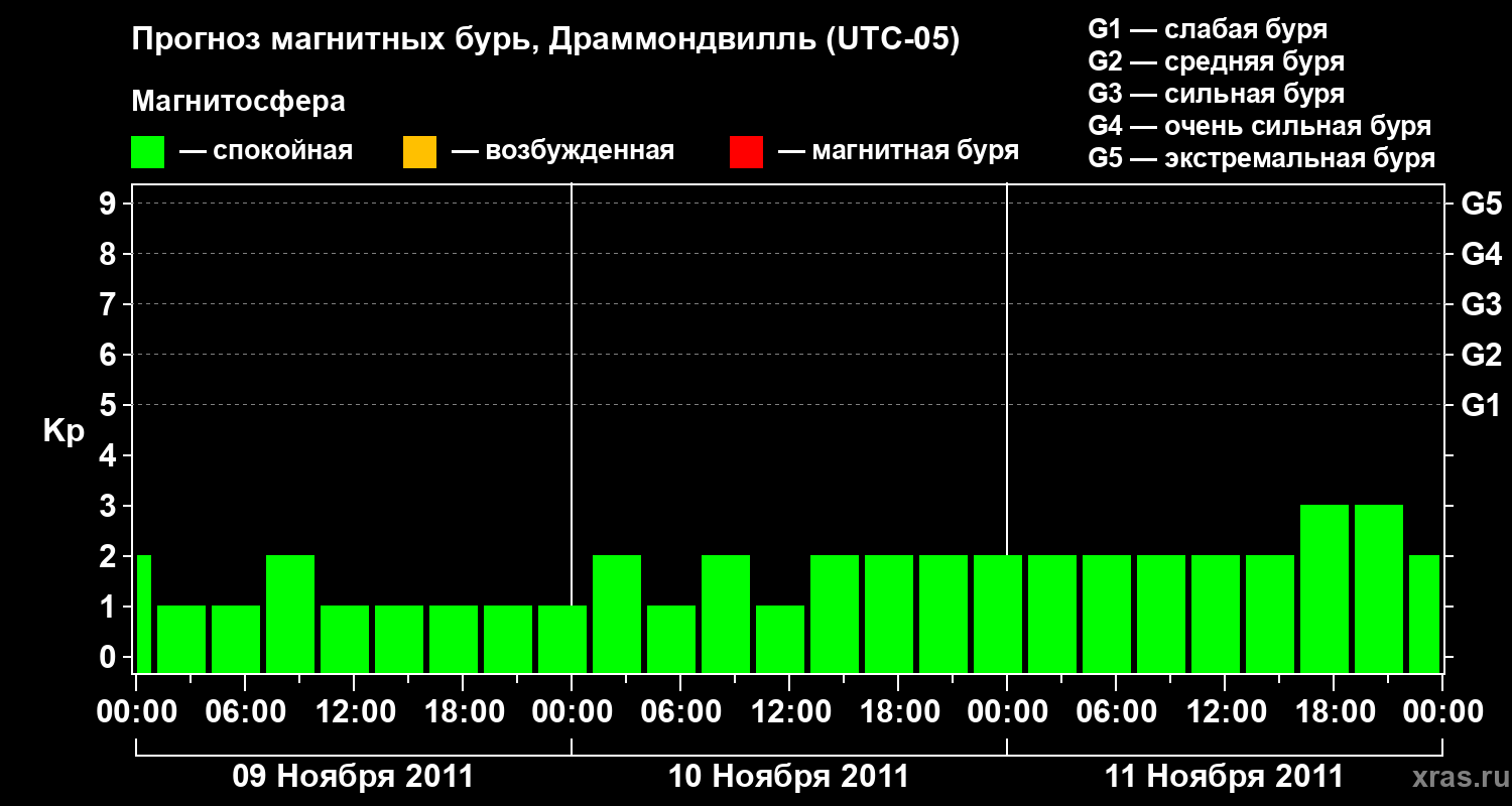 Прогноз магнитных бурь в Драммондвилле — 9 ноября 2011 года