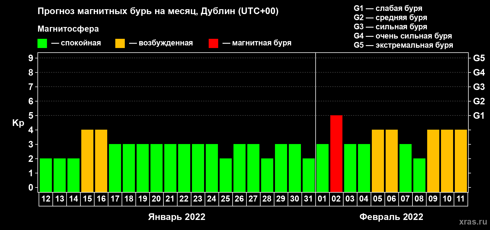 Прогноз магнитных бурь в Дублине — 12 января 2022 года