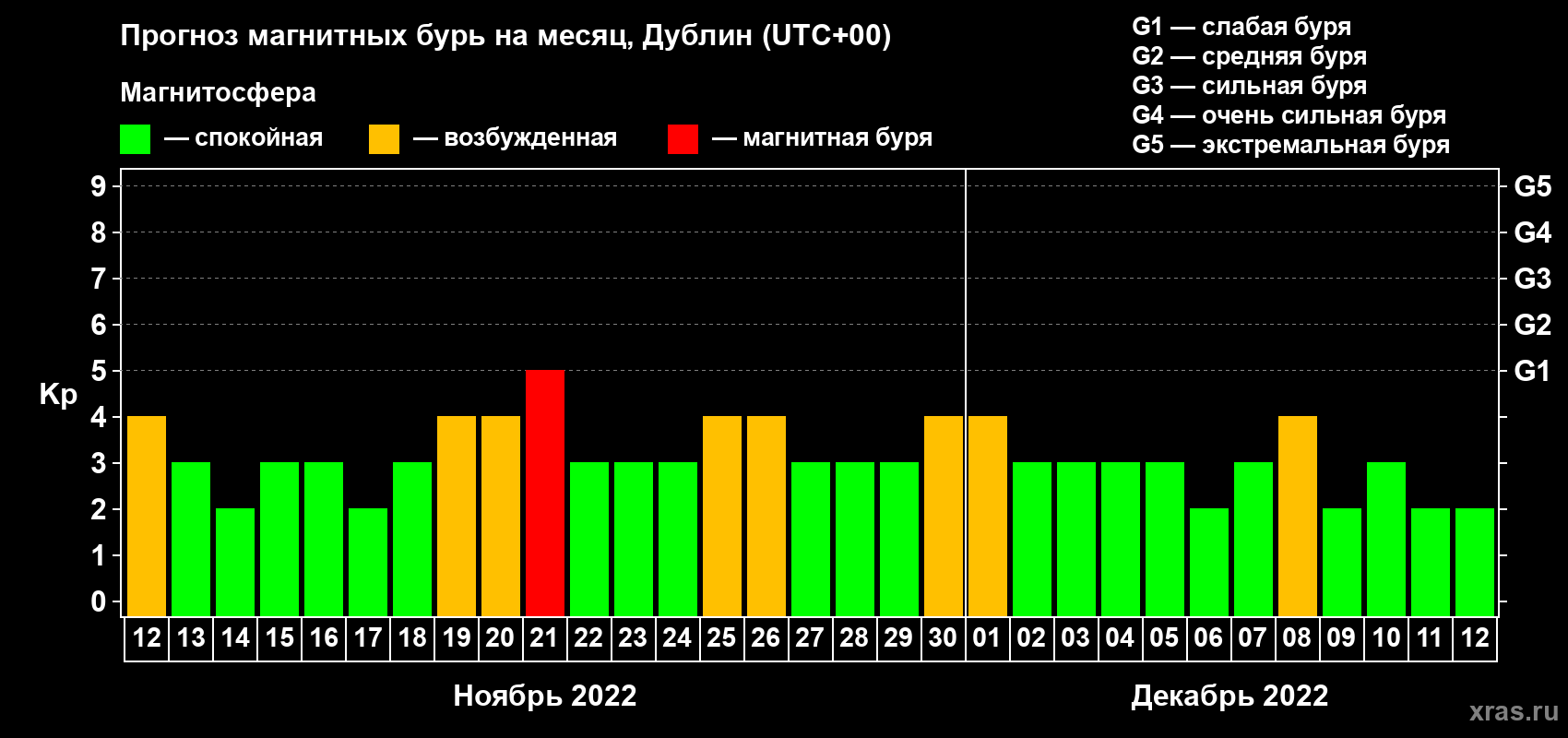 Прогноз магнитных бурь в Дублине — 12 ноября 2022 года