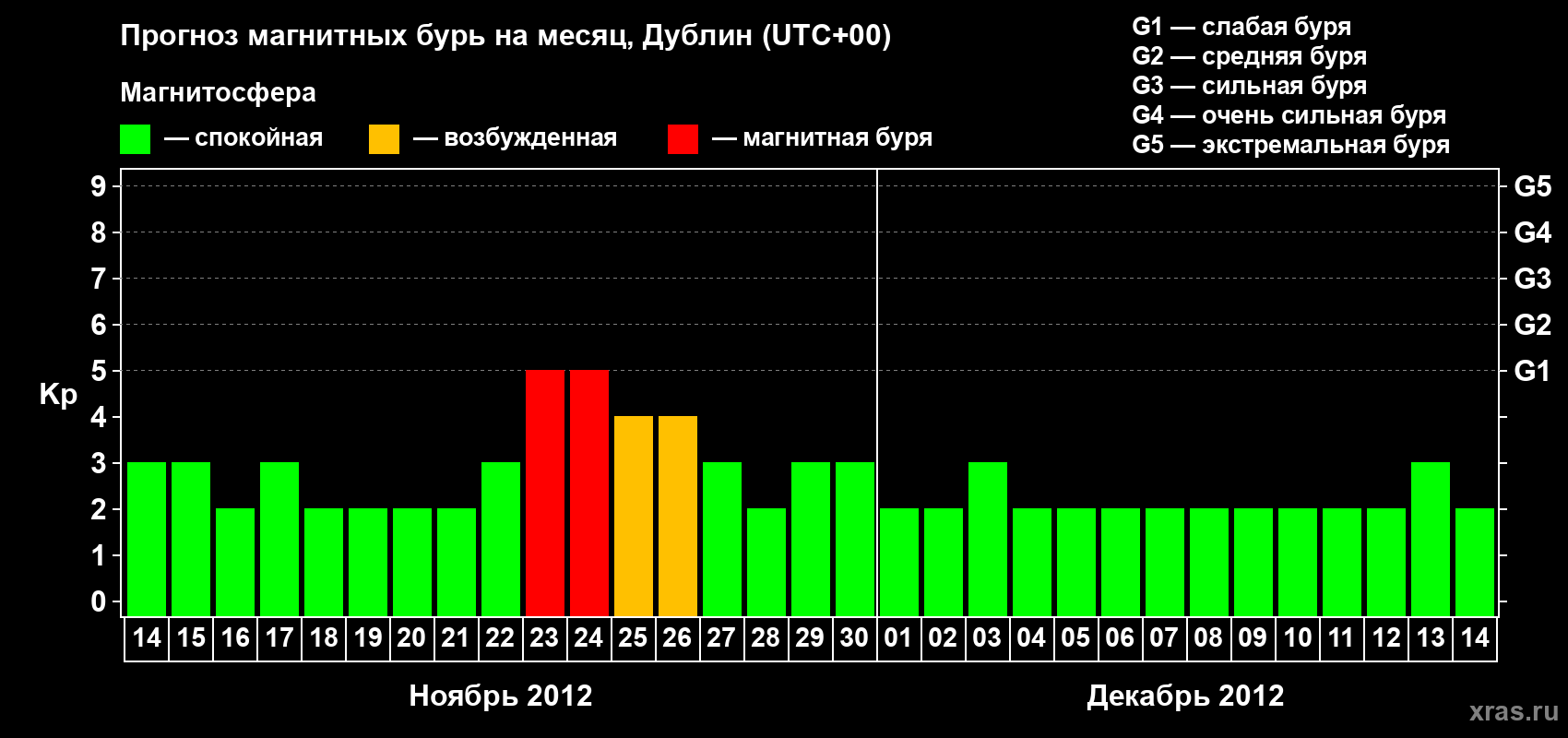 Прогноз магнитных бурь в Дублине — 14 ноября 2012 года