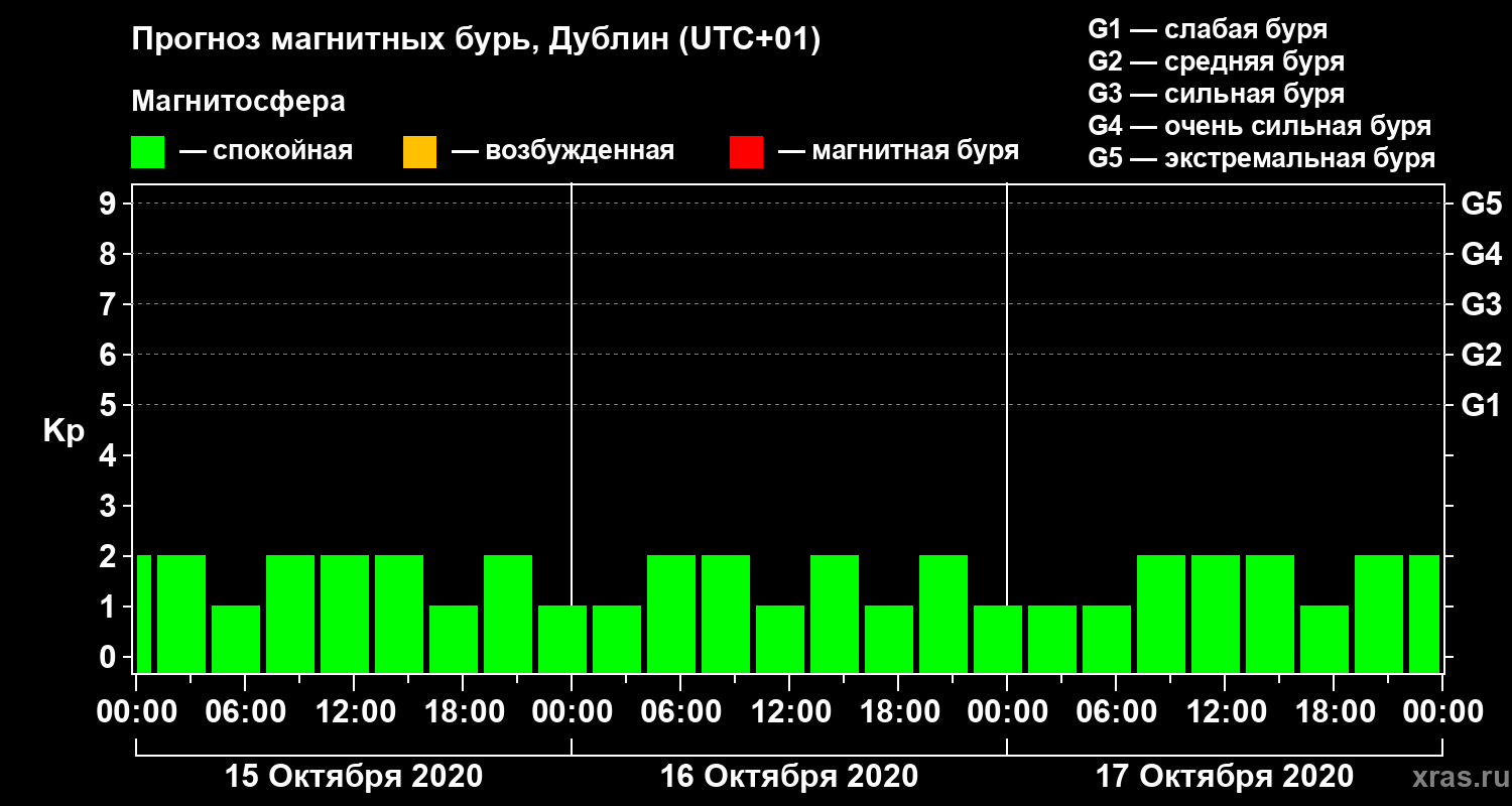 Прогноз магнитных бурь в Дублине — 15 октября 2020 года