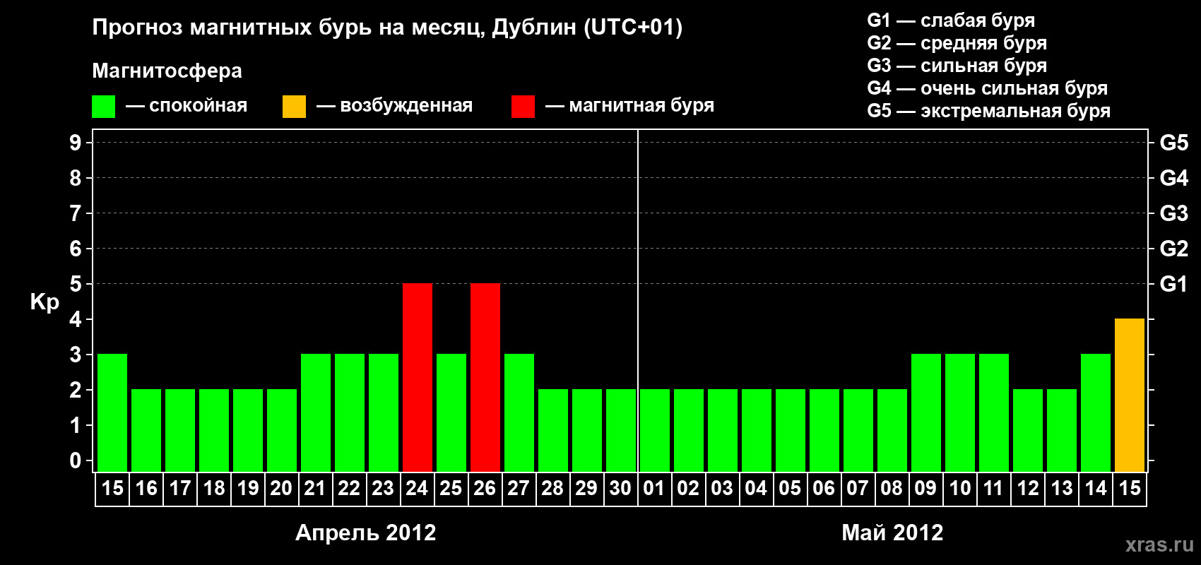 Прогноз магнитных бурь в Дублине — 15 апреля 2012 года