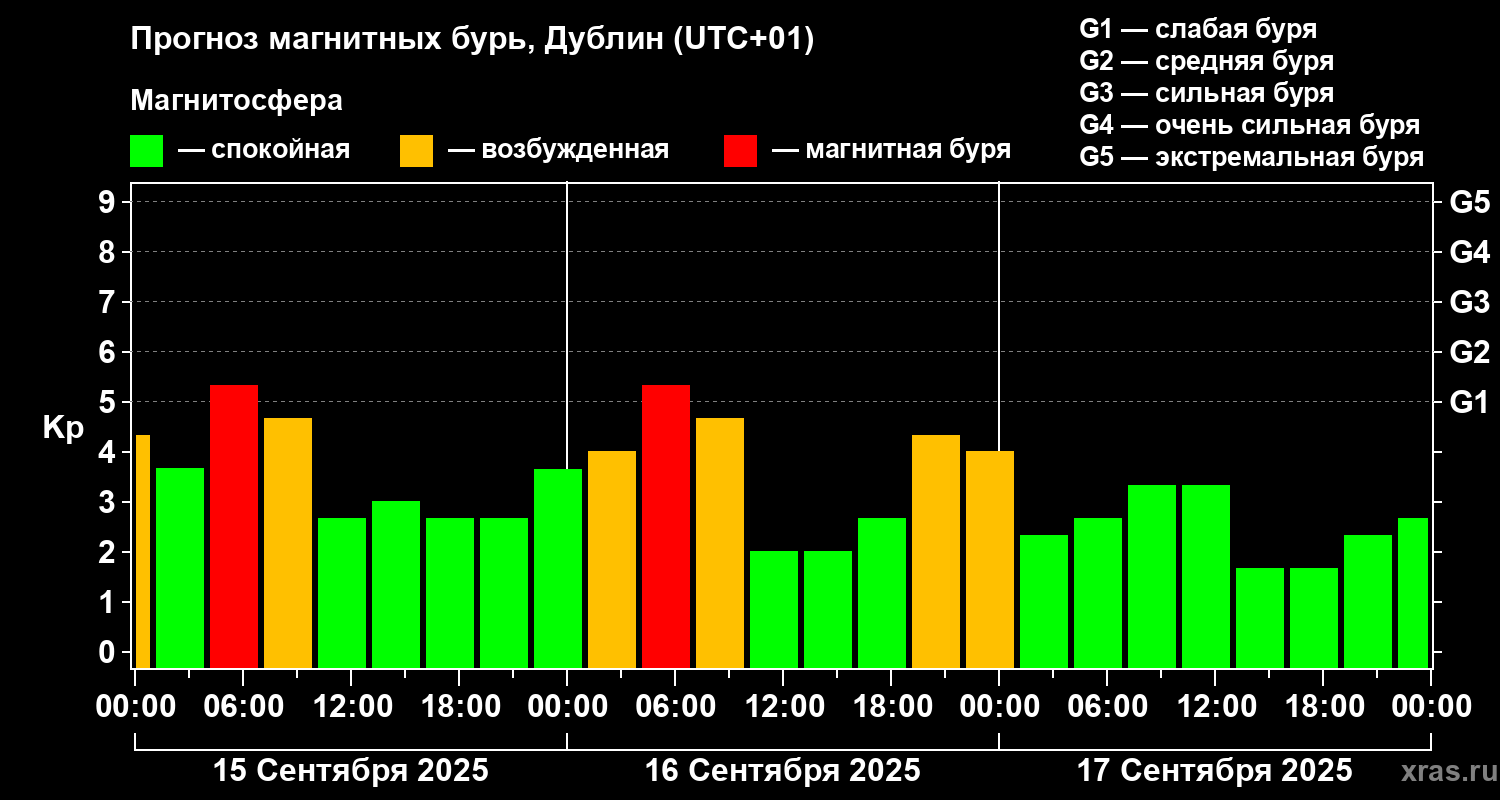 Прогноз магнитных бурь в Дублине на 15 сентября 2025 года