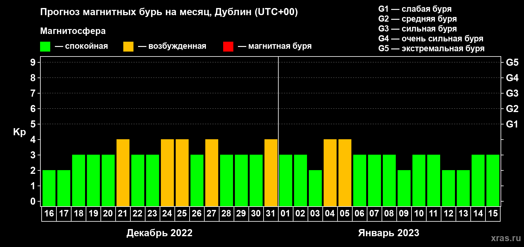 Прогноз магнитных бурь в Дублине — 16 декабря 2022 года