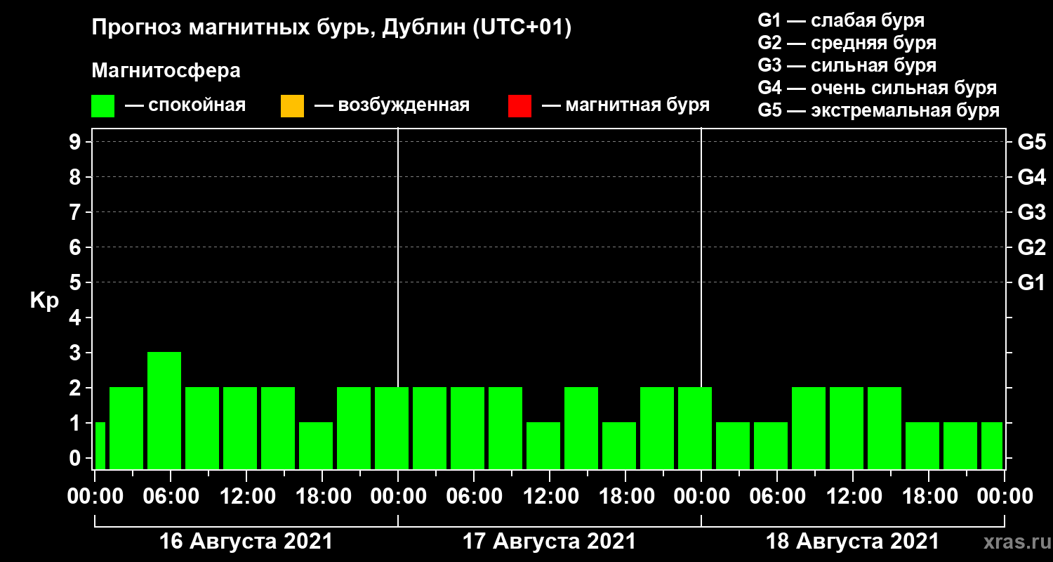 Прогноз магнитных бурь в Дублине — 16 августа 2021 года