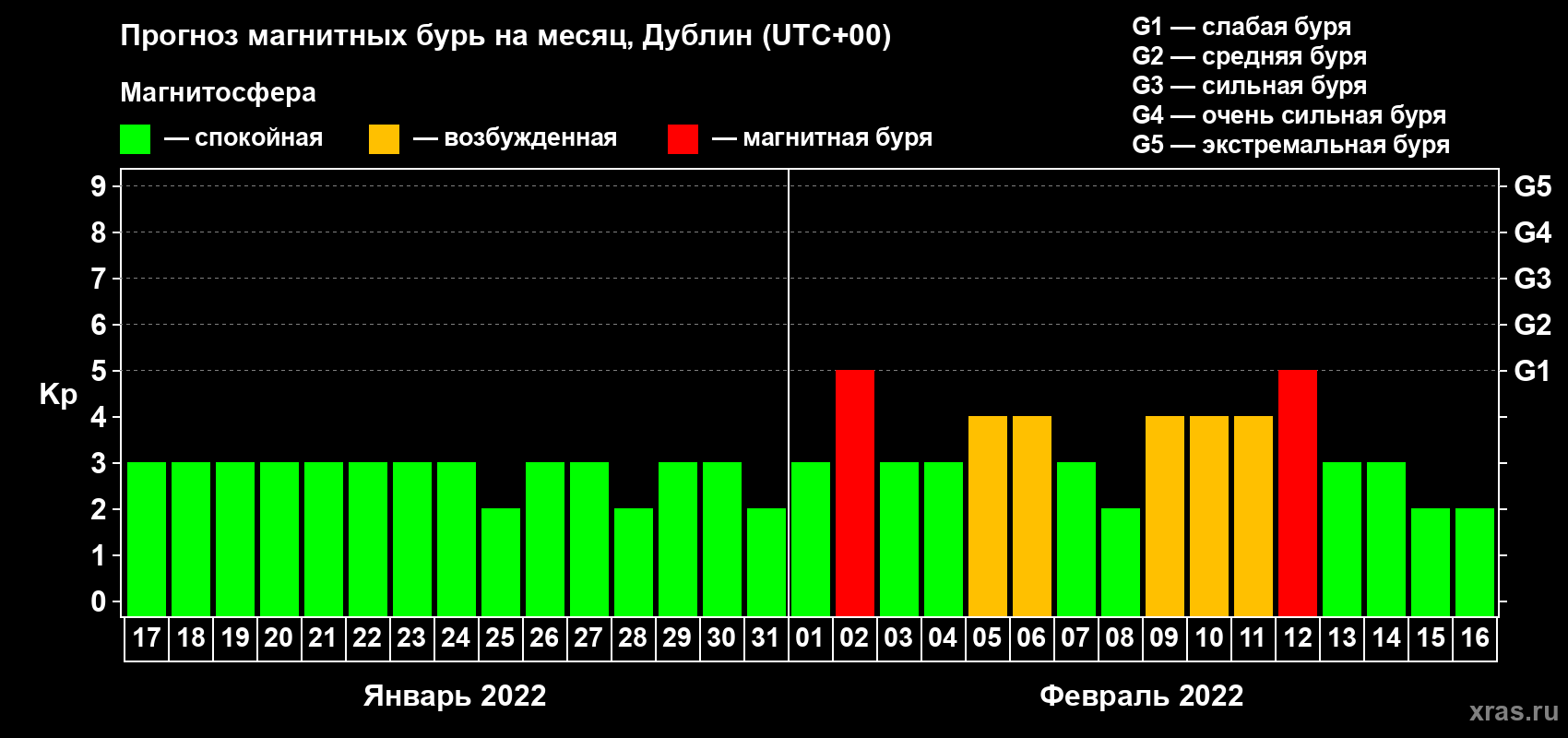 Прогноз магнитных бурь в Дублине — 17 января 2022 года