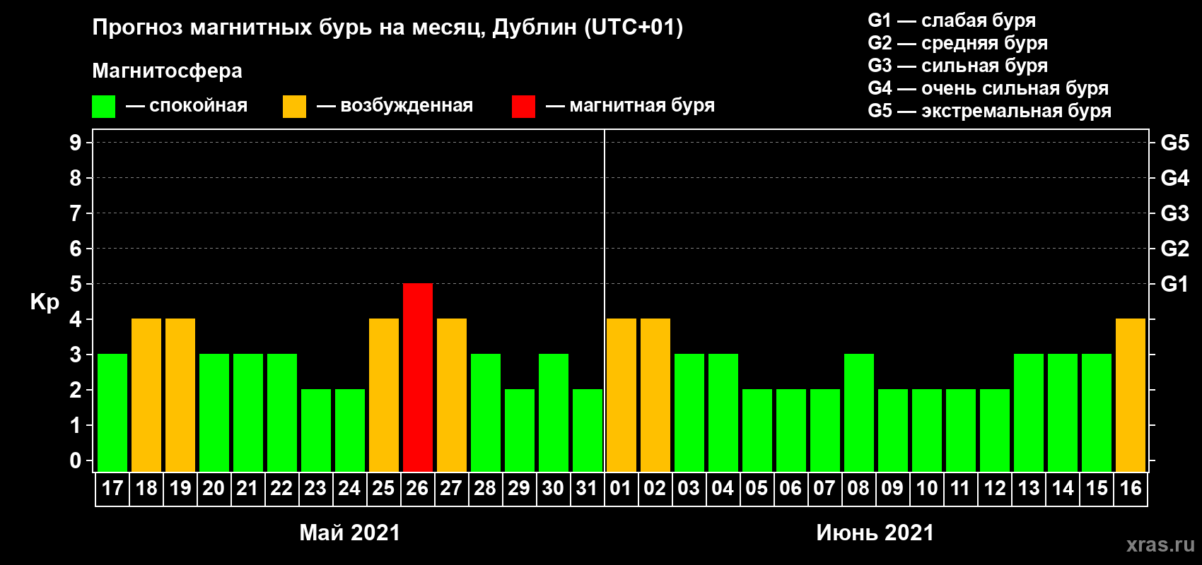 Прогноз магнитных бурь в Дублине — 17 мая 2021 года