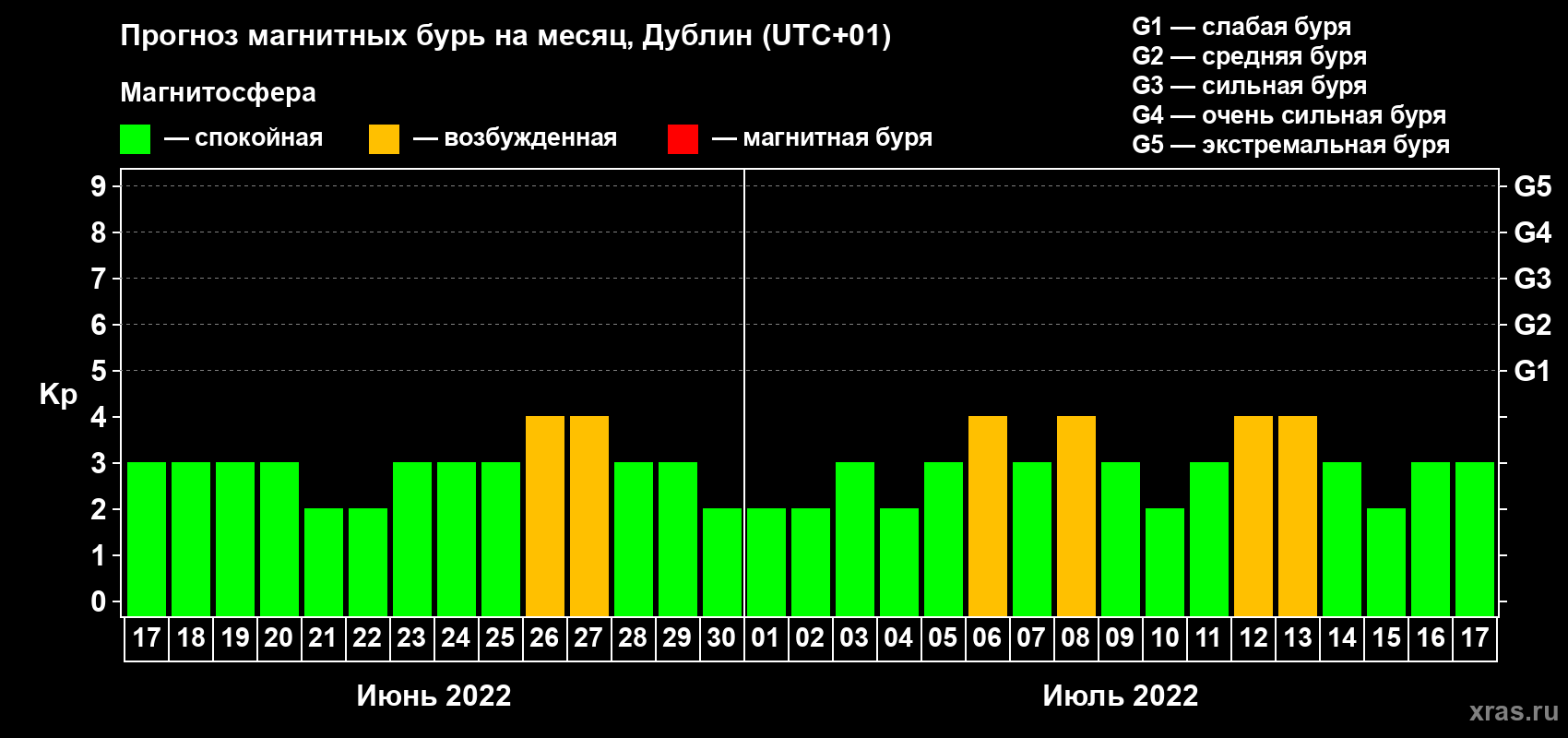 Прогноз магнитных бурь в Дублине — 17 июня 2022 года