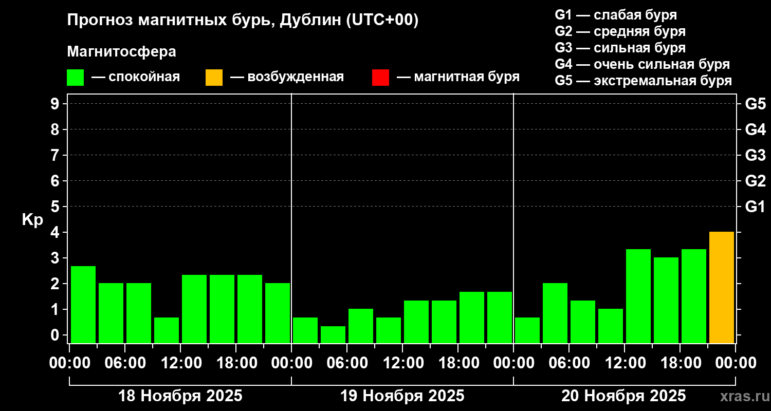 Прогноз магнитных бурь в Дублине — 18 ноября 2025 года