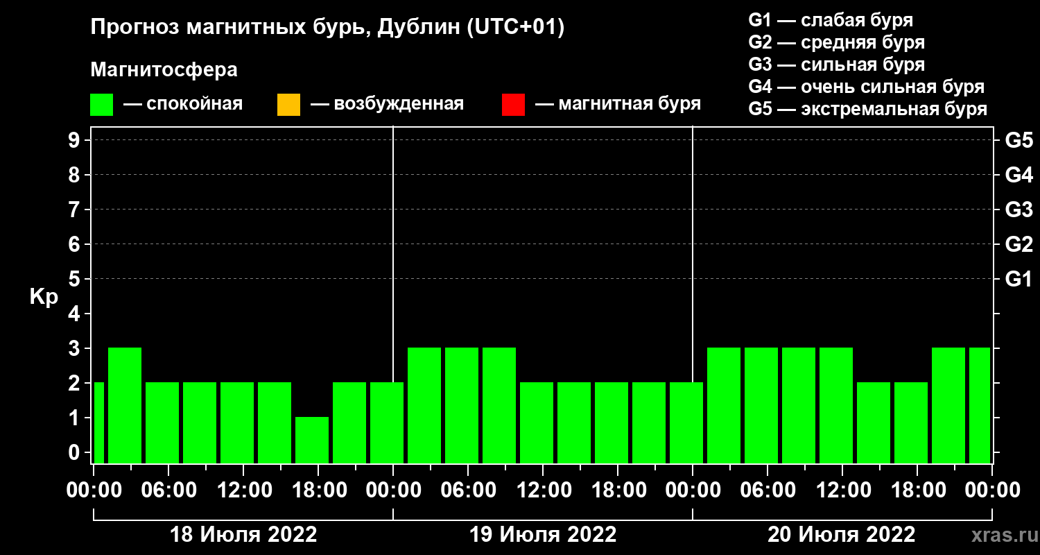 Прогноз магнитных бурь в Дублине — 18 июля 2022 года