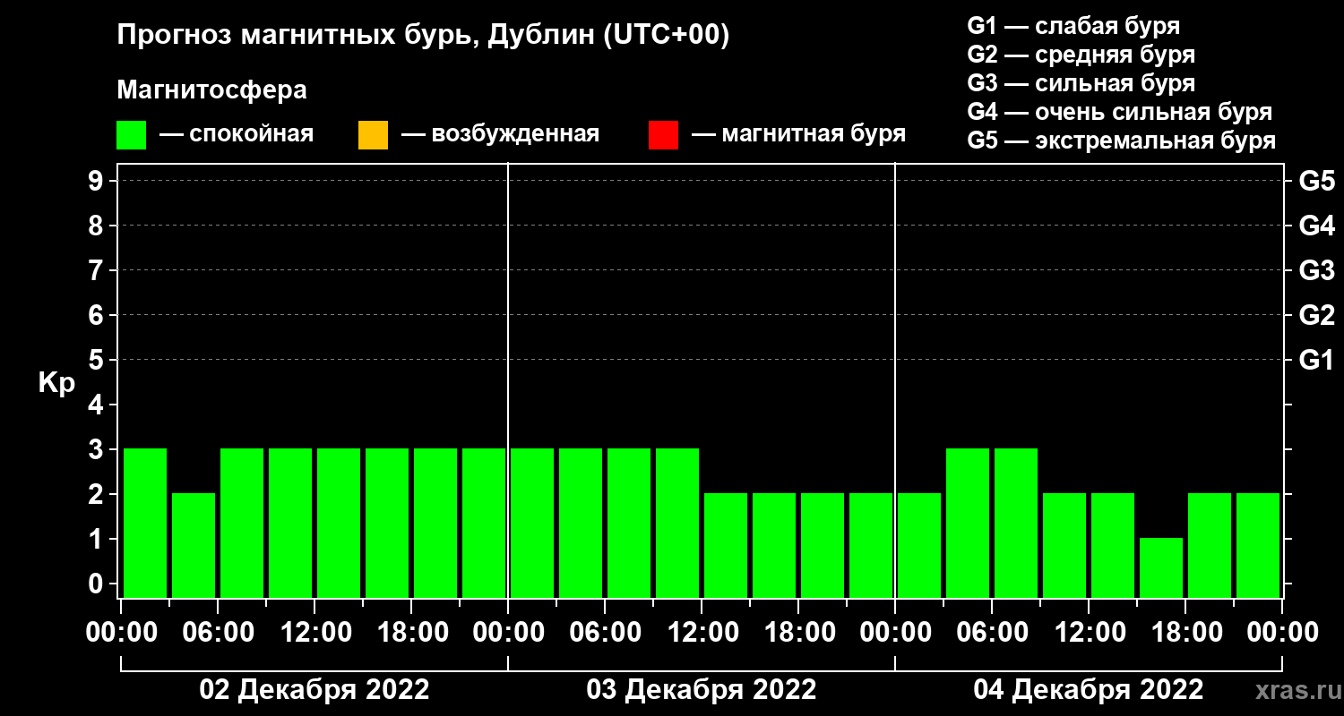 Прогноз магнитных бурь в Дублине — 2 декабря 2022 года