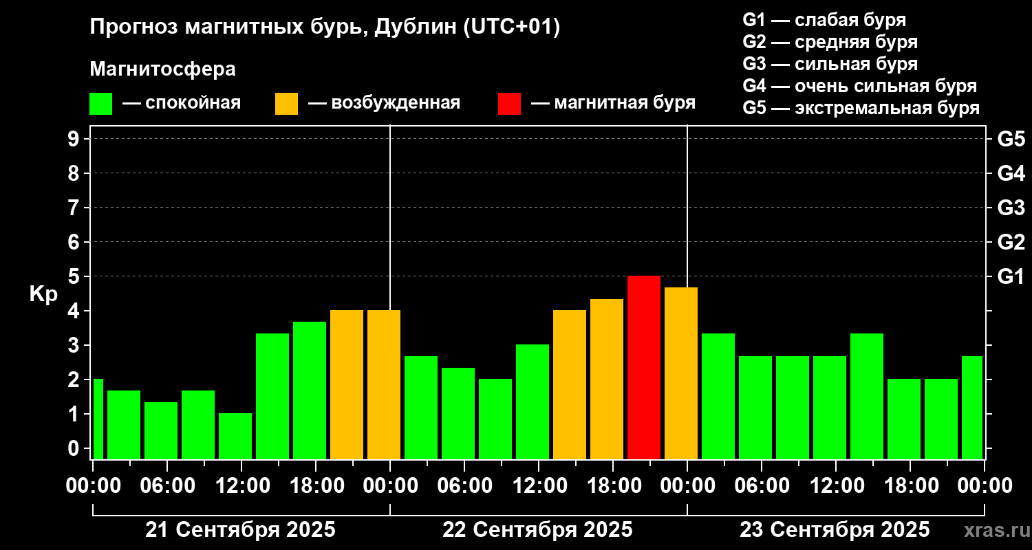 Прогноз магнитных бурь в Дублине — 21 сентября 2025 года