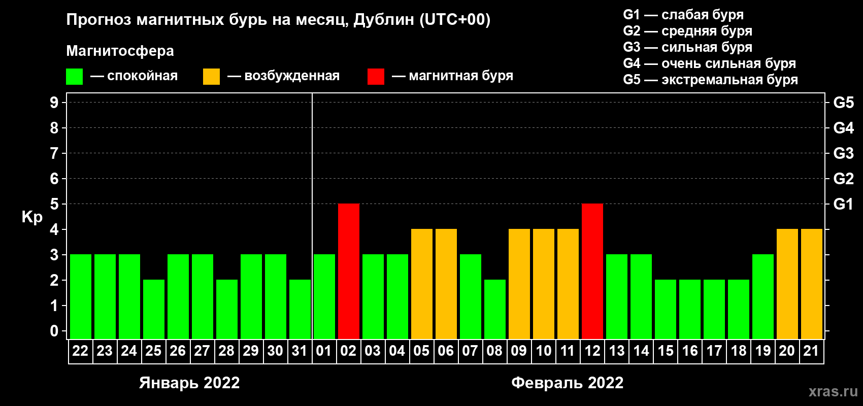 Прогноз магнитных бурь в Дублине на 22 января 2022 года