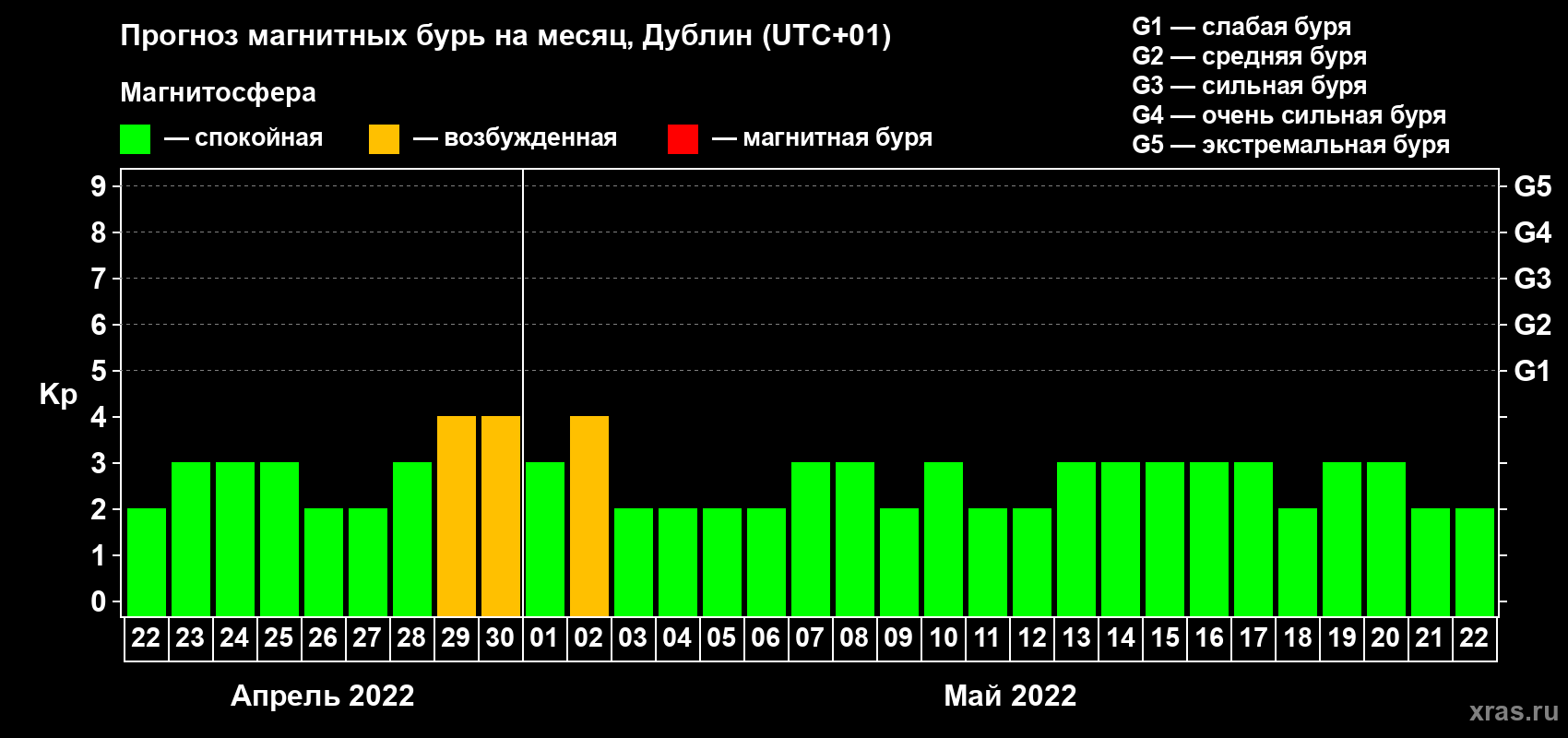 Прогноз магнитных бурь в Дублине — 22 апреля 2022 года